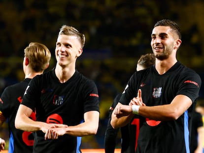 Los goles de Dani Olmo y Ferran le dieron la victoria a los de Flick | El conjunto canario pidió penalti por mano de Eric García, pero había fuera de juego previo