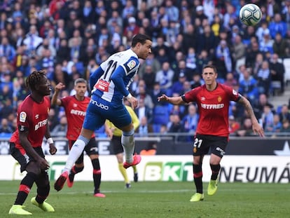 El delantero marca su cuarto gol en cuatro partidos y sella la primera victoria del conjunto blanquiazul en Cornellà, ante el Mallorca, rival directo en la lucha por evitar el descenso