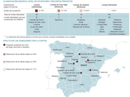 Fomento prevé eliminar seis líneas de Madrid y reducir servicio en 18. El plan de racionalización afecta a recorridos hacia Castilla-La Mancha y Castilla y León