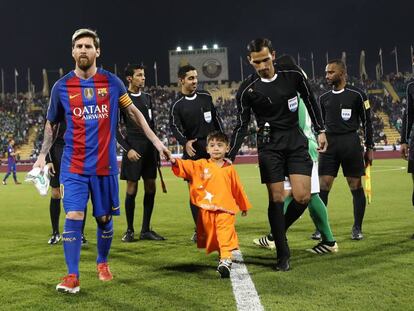 El hijo de refugiados, famoso por su imagen jugando con una camiseta del 10 hecha con una bolsa de plástico, conoce a su héroe azulgrana