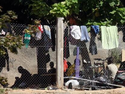 Un grupo de inmigrantes que trabajan recogiendo fruta duermen al raso en una plaza del casco antiguo de Lleida porque los patronos no les dan casa
