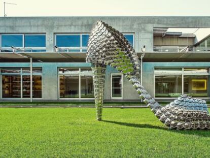 Un armario de viaje convertido en escultura, una pieza hecha de jirones de piel desechados En su estreno con Louis Vuitton, los hermanos Campana apuestan por el reciclaje