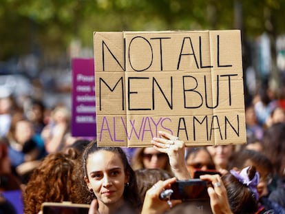 La semana en la que el marido de Gisèle Pelicot ha ido a juicio junto a 51 de sus violadores, el ‘hashtag’ que se inició en la ‘manosfera’ ha inundado las redes sociales, pero para rebatirlo desde el feminismo: “Not all men, but always a man”