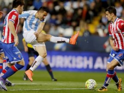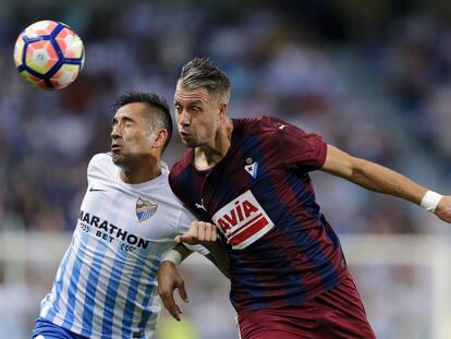 Un golazo del lateral del Málaga iguala un partido de dominio alterno y final bronco