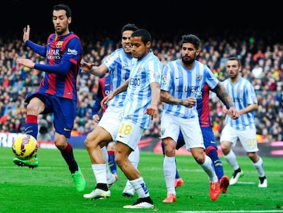 El excelente ejercicio defensivo del Málaga y la terrible pifia de Alves condenan a un Barça de lo más insípido
