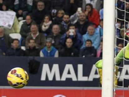 Tres goles del punta acaban con un Málaga tierno y relajado, perjudicado en los dos primeros goles locales por las decisiones del árbitro