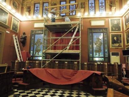 El crist era allà d’ençà el 1938, en plena revolta de Franco. El bust del Rei ha estat desplaçat cap a un cantó
