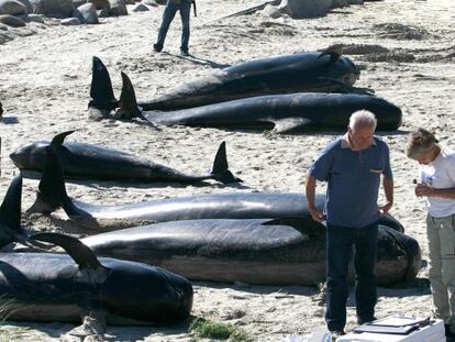 Perecen 18 de los 22 calderones varados en la costa norte de Galicia