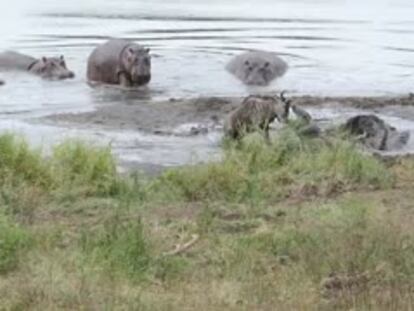 Los mamíferos logran escoltar al animal hasta fuera del agua