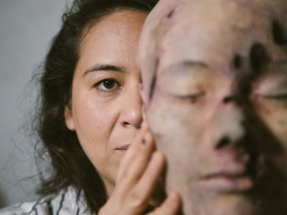 La maquillista Karina Rodríguez, nominada dos veces al Ariel, prepara en su taller de Ciudad de México los litros de sangre que se derramarán en la serie de Netlflix, que se estrena el próximo viernes