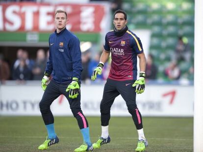 Luis Enrique ha repartido minutos entre los tres metas del Barça sin decantarse todavía por uno Ter Stegen, que llego como titular, ve cómo Bravo y Masip le discuten el puesto