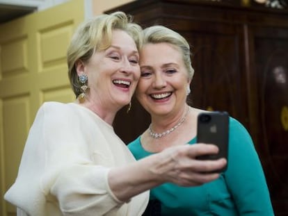 La actriz sacó su iPhone5 para fotografiarse con la Secretaria de Estado, en una gala previa a la entrega de los premios del Kennedy Center