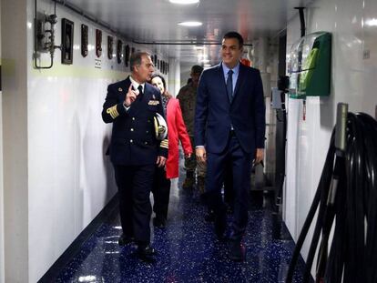 El mensaje a los militares, desde el buque Juan Carlos I, es el primero del nuevo presidente del Gobierno