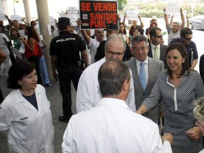 Catalá y Llompart esquivan a un centenar de personas en defensa de los servicios públicos