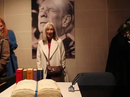 La escritora y profesora argentina María Kodama, viuda de Borges, presenta un libro que radiografía la biblioteca del genio