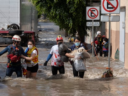 La Cruz Roja evacua a una familia que aguantó aislada durante 40 horas en un tercer piso en el centro inundado de la ciudad hidalguense
