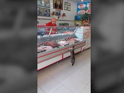 El felino se apoyó en el mostrador del establecimiento y no se marchó hasta conseguir lo que quería