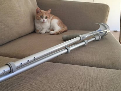 De como el autor, accidentado, descubre las dotes terapéuticas de su gata
