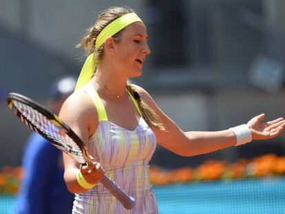 La bielorrusa, tres del mundo, pierde los estribos y cae ante Makarova (6-1, 2-6 y 3-6) en segunda ronda La estonia Kanepi fulmina a Carla Suárez (6-3 y 6-1) Anabel Medina, la única superviviente española