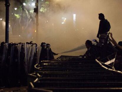 Un minúsculo grupo provoca disturbios una vez finalizada la multitudinaria manifestación por la desaparición de 43 estudiantes en Ayotzinapa