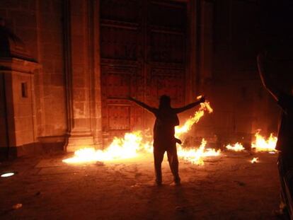 Una masiva y pacífica manifestación en la capital acaba con un grupúsculo tratando de incendiar el Palacio Nacional