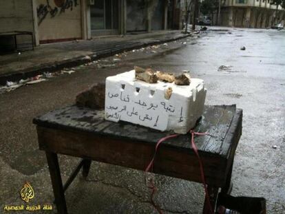 Advertencia desesperada en medio de una calle en Siria, donde ya han muerto 9.000 personas