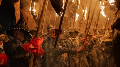 La ronda de noche de pez y pellejos de cabra ilumina la procesión a santo Toribio en Mayorga