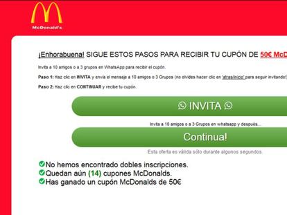 Un falso cupón de McDonald's roba datos personales en WhatsApp