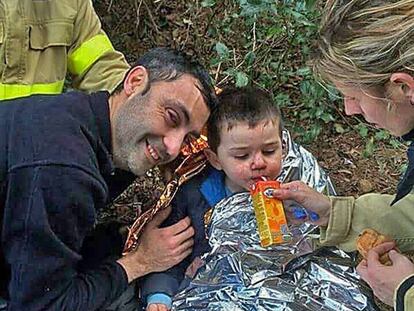 Josep Ribas y su hijo han localizado al pequeño Jordi, que iba descalzo y tenía rasguños en la cara, porque llamaba a su padre