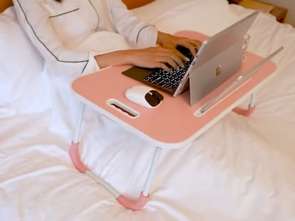 También podrás teletrabajar, leer o escribir con libertad gracias a sus patas antideslizantes, diseño curvo y sus extras para colocar la tableta o la botella de agua