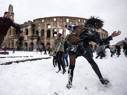 Una intensa nevada cae desde esta madrugada en Roma y ya se han acumulado varios centímetros lo que está provocando problemas en la circulación, mientras que los colegios permanecen cerrados debido a la llegada de una ola de frío siberiano