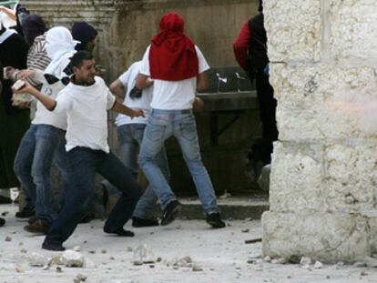 Un grupo de musulmanes ataca con piedras a los agentes cuando irrumpieron cerca del templo de Al Aqsa durante el rezo del mediodía