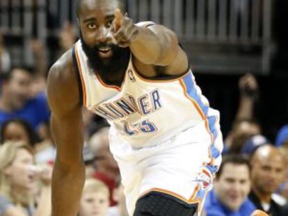 Oklahoma gana el primer asalto de la final (104-94). ‘KD’ suma 36 puntos y James 30, pero no está a su altura en el último cuarto