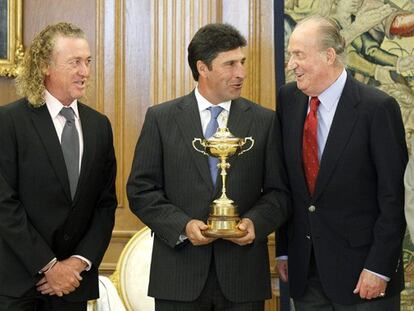 El Rey recibe a Chema Olazábal, Jiménez y Sergio García tras el trofeo de la Copa Ryder y recuerda a Ballesteros