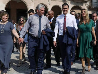 Díaz-Canel y su esposa acompañan al presidente español y a Begoña Gómez en un paseo por La Habana Vieja