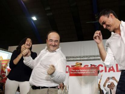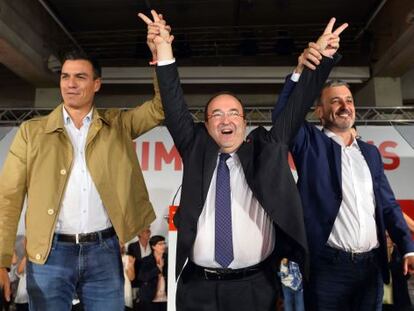 El candidato del PSC a las elecciones catalanas logra que el líder del PSOE siga sus pasos en un mitin de Tarragona