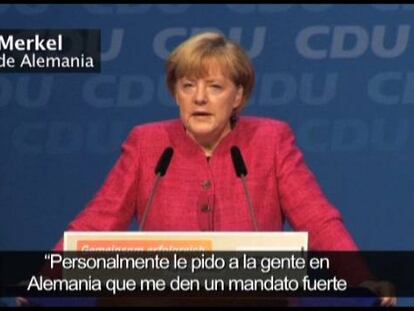"Ni eurobonos ni emisiones de deuda conjunta”, asegura la canciller en un multitudinario mitin en Berlín a 24 horas de la votación