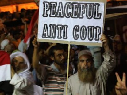 El ministro de Exteriores recibe a los enviados de Washington y Bruselas Los partidarios de Morsi reclaman que el diálogo se base en la Constitución suspendida