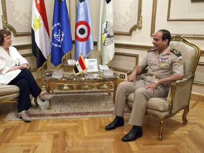 La jefa de la diplomacia europea es la primera dirigente occidental que se encuentra con el presidente depuesto egipcio Los Hermanos Musulmanes movilizarán a un millón de personas este martes