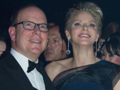 El príncipe de Mónaco aparece con su sobrina Carlota, embarazada, en un acto oficial en el que la gran ausente por su esposa Charlene