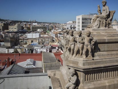 El terrat de l'edifici de Portal de l’Àngel conserva un conjunt escultòric desconegut, únic testimoni de la seva època gloriosa