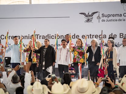 Los primeros ministros electos en las urnas participan en una ceremonia para recibir el bastón de mando de comunidades indígenas de México