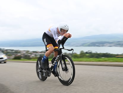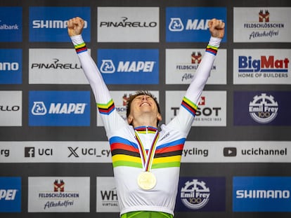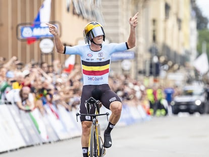 El belga se impone por solo siete segundos al italiano Filippo Ganna, al que ganó también en 2023, y completa una temporada de ensueño en la que logró dos oros en París 2024