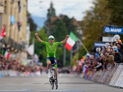 Como hace un año en Imola, el ciclista francés gana el Mundial con un ataque feroz y solitario que hunde las esperanzas belgas depositadas en Van Aert