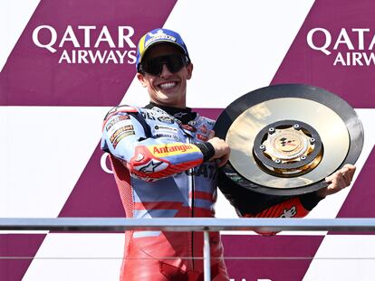 Francesco Bagnaia lidera la carrera de MotoGP de este domingo y comparte podio con Marc Márquez, en segunda posición y Jorge Martín, en tercera posición, que se corona campeón del mundo