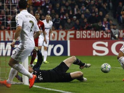 El equipo de Mourinho, muy contenido, cae ante el Bayern en el tramo final tras una jugada mal defendida por Coentrão.- El cuadro español apenas tuvo protagonismo en ataque