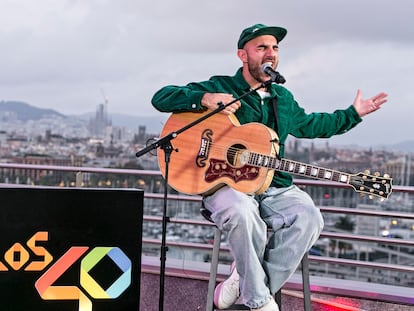 El cantante protagoniza la segunda actuación sorpresa de la Music Week desde la terraza del Eurostars Gran Marina de Ciutat Vella, antes de la gala de LOS40