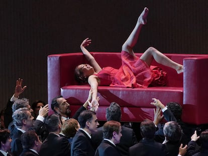 La soprano estadounidense logra elevar el personaje de Violetta en la célebre propuesta escénica minimalista de Willy Decker, muy por encima de Xabier Anduaga y Luca Salsi, pese a la desafortunada dirección musical de Henrik Nánási