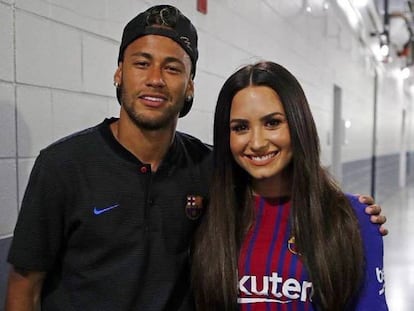 El jugador del Barcelona, que felicitó hace unos días a la cantante por su nuevo trabajo, le regaló una camiseta de su equipo tras coincidir con ella en Nueva Jersey