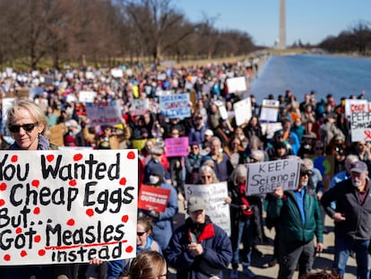 Miles de personas se manifiestan en la capital contra los recortes de Elon Musk y contra el riesgo de que estos afecten al liderazgo mundial en investigación de Estados Unidos